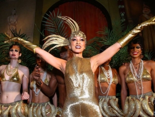 The night was a magical metaphor of literary style and musical catwalk. After being introduced by Zac Posen. Cleveland thrilled and enthusiastic audience as she appeared in a custom made lavishly beaded gold gown by Zac Posen and headdress and accessories by Mike Jackson New York. As a cast of male dancers and singers serenaded her arrival the crowd roared as she appeared and sang from atop the ballrooms balcony giving the performance of a lifetime before descended the stairs in iconic Pat Cleveland style like a classic cabaret diva during the tribute. As Cleveland finished her performance the show went to another level like a huge burst of confetti when Swarovski covered banana clad Male and Female dancers filled the dance floor.